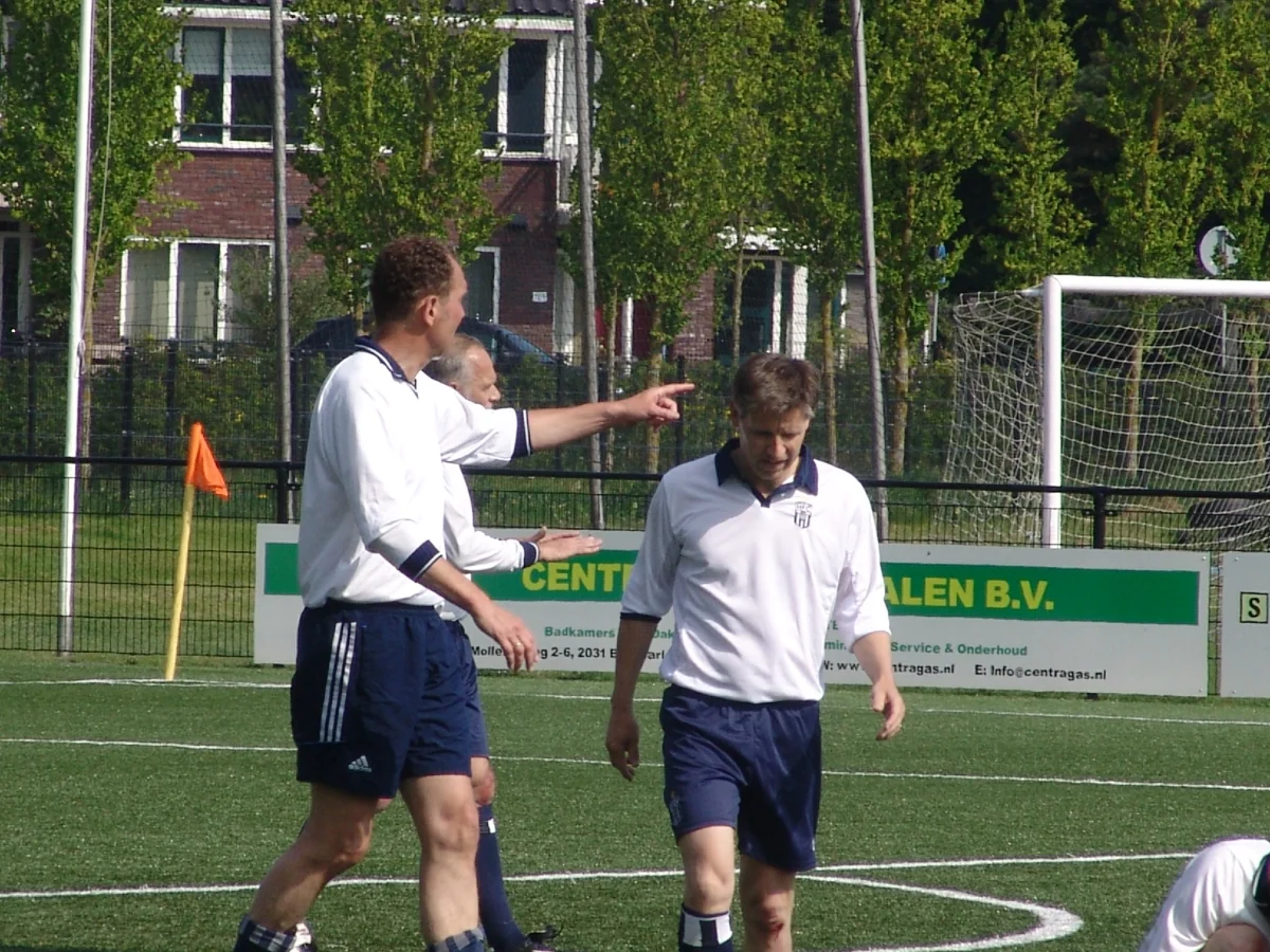 Enigszins hallucinerend van de verdovende en pijnbestrijdende middelen sta ik op zaterdagmiddag niet op het veld om naar onze kranige veteranen te kijken, maar lig op de bank en staar naar de pas nog zorgvuldig opnieuw gesausde muur. Om half twee denk ik wat ik in de voetbaltas moet stoppen en om half drie begint de wedstrijdspanning – naast natuurlijk de gebruikelijke verwarring of iedereen er is, of niemand tijdens de warming up door zijn hoeven zal zakken, of de bank wel groot genoeg is voor alle reserves en of het uitgelaten gezelschap van de veteranen wel serieus genoeg aan de wedstrijd zal beginnen.
